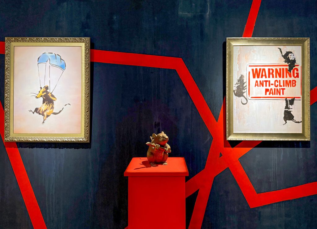 - Media: Integration der Videoinstallationen und multimedialen Highlights, die Banksys Werke auf verschiedensten Materialien digital unterstützen.